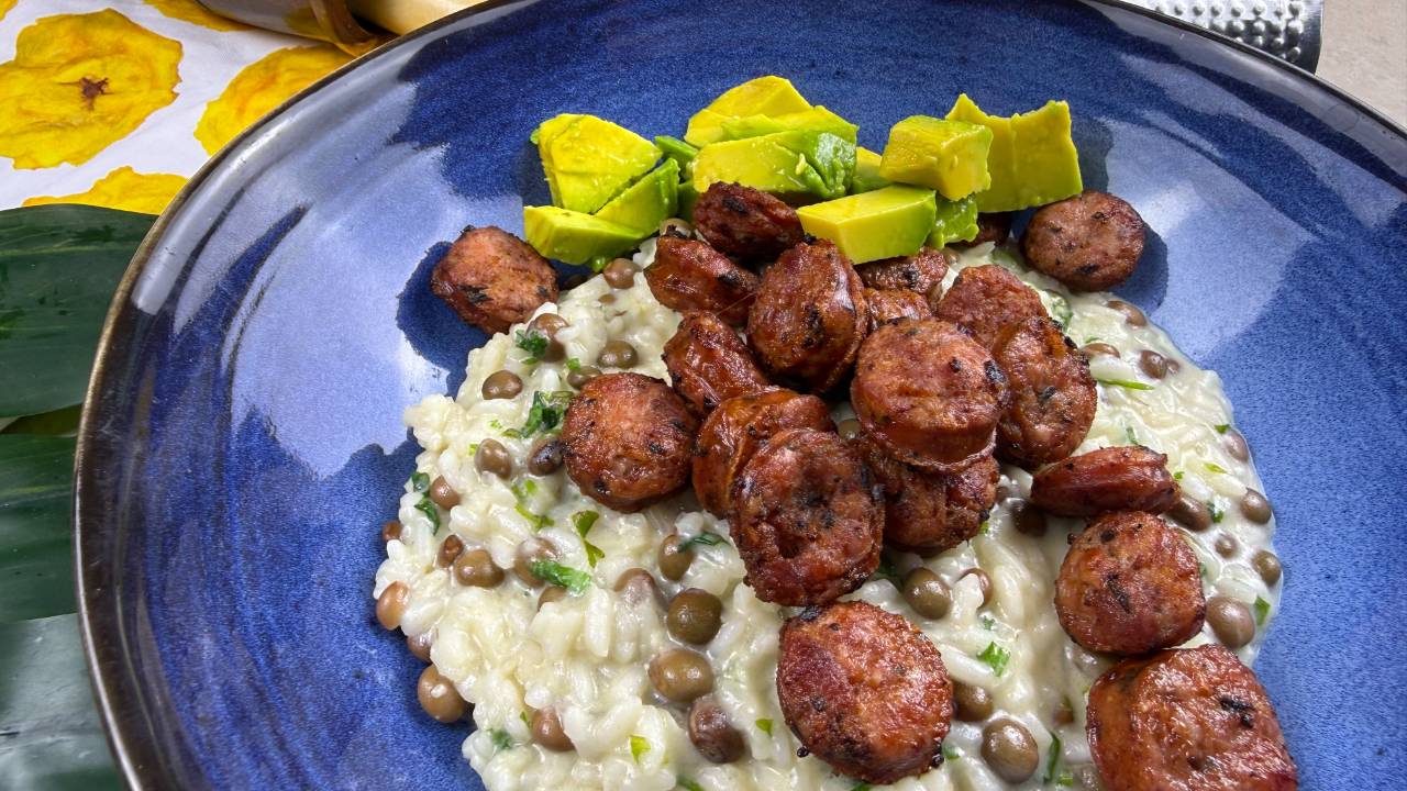 Risotto de Guandules con Coco y Longaniza
